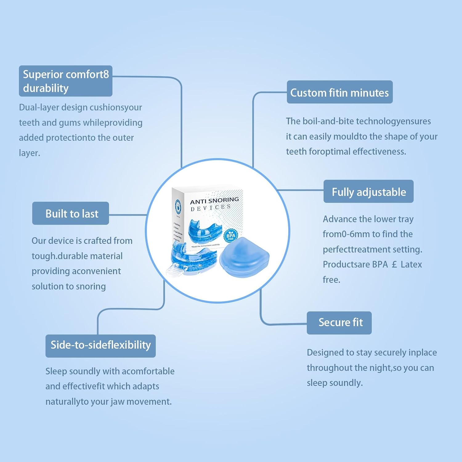 هل تعاني من الأرق ليلاً؟ صُممت هذه القطعة الفموية المُساعدة على النوم لدعم التنفس الطبيعي لنوم هادئ ومتواصل.