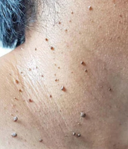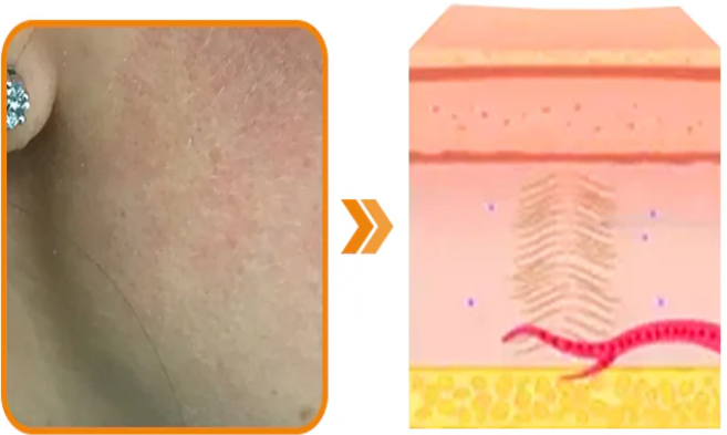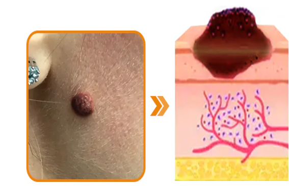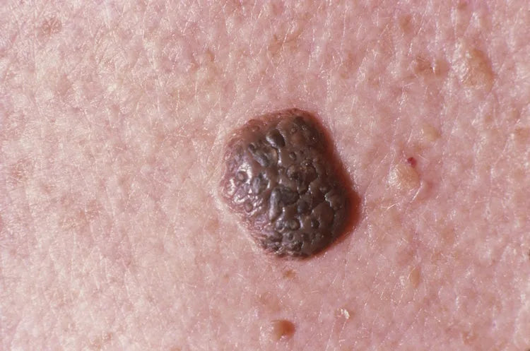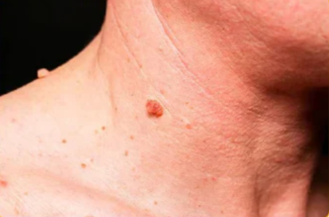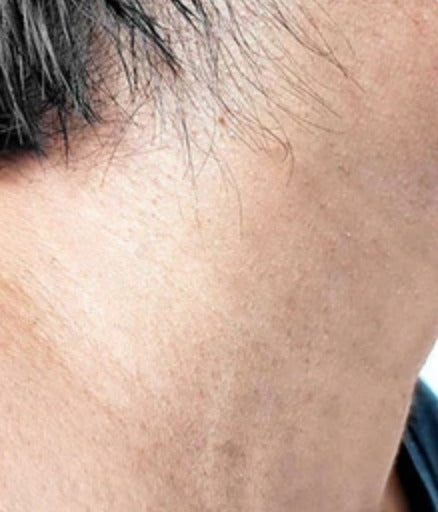 علامة جلدية مرتفعة، ولون غير متساو، وعيوب مرئية.